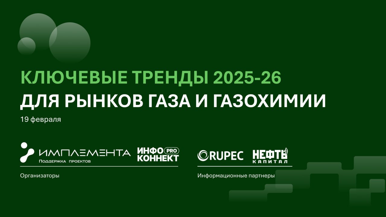 19 февраля, Москва. — В Москве состоялся онлайн-вебинар «Ключевые тренды 2025–2026 для рынков газа и газохимии», организованный компаниями Имплемента и Инфоконнект PRO. Информационными партнерами выступили: информационно-аналитический центр RUPEC и журнал "Нефть и Капитал". В ходе мероприятия эксперты Дмитрий Акишин, Мария Белова («Имплемента») и Евгений Гаврилов («Росхим») представили развернутый анализ ситуации на рынках трубопроводного газа, СПГ, метанола, аммиака и карбамида, а также обозначили новые драйверы спроса, включая энергопотребление центров обработки данных (ЦОД).