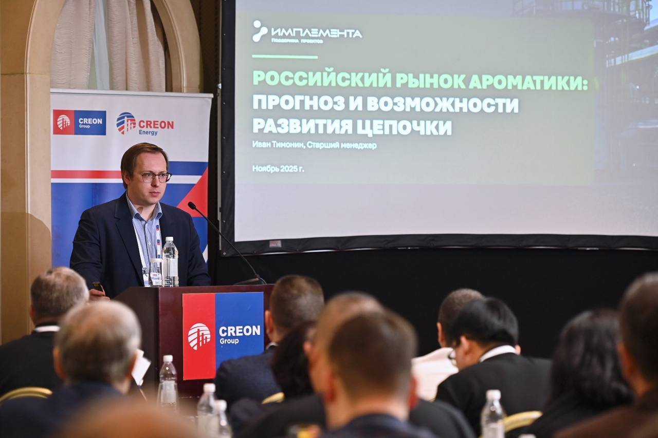 24 ноября 2025 года, Москва. — Российский рынок ароматики демонстрирует устойчивый спрос, вступая в фазу глубоких структурных преобразований, которые создают значительный потенциал для дальнейшего роста и открывают новые перспективы для развития производств. В среднесрочной перспективе ключевым драйвером станут крупные инвестпроекты в ароматической цепочке, ориентированные на импортозамещение и расширение дальнейших переделов. Об этом Иван Тимонин, старший менеджер консалтинговой компании «Имплемента» рассказал, выступая на конференции «Ароматика 2025», организованной компанией CREON.