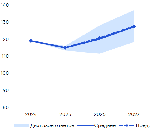 Прогноз трубопроводного экспорта газа по консенсус-прогнозу остался неизменным: поставки в 2025 г. снизятся на 3% относительно показателя прошлого года до 115 млрд куб. м.